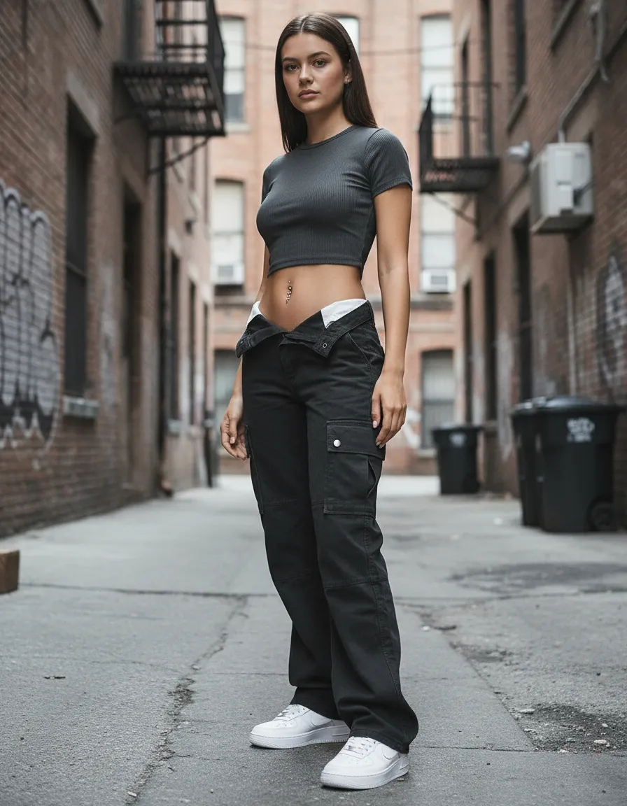 Pantalón de mezclilla azul con corte acampanado y bolsillos cargo laterales. Combina estilo moderno y comodidad en una sola prenda, ideal para un look urbano y versátil