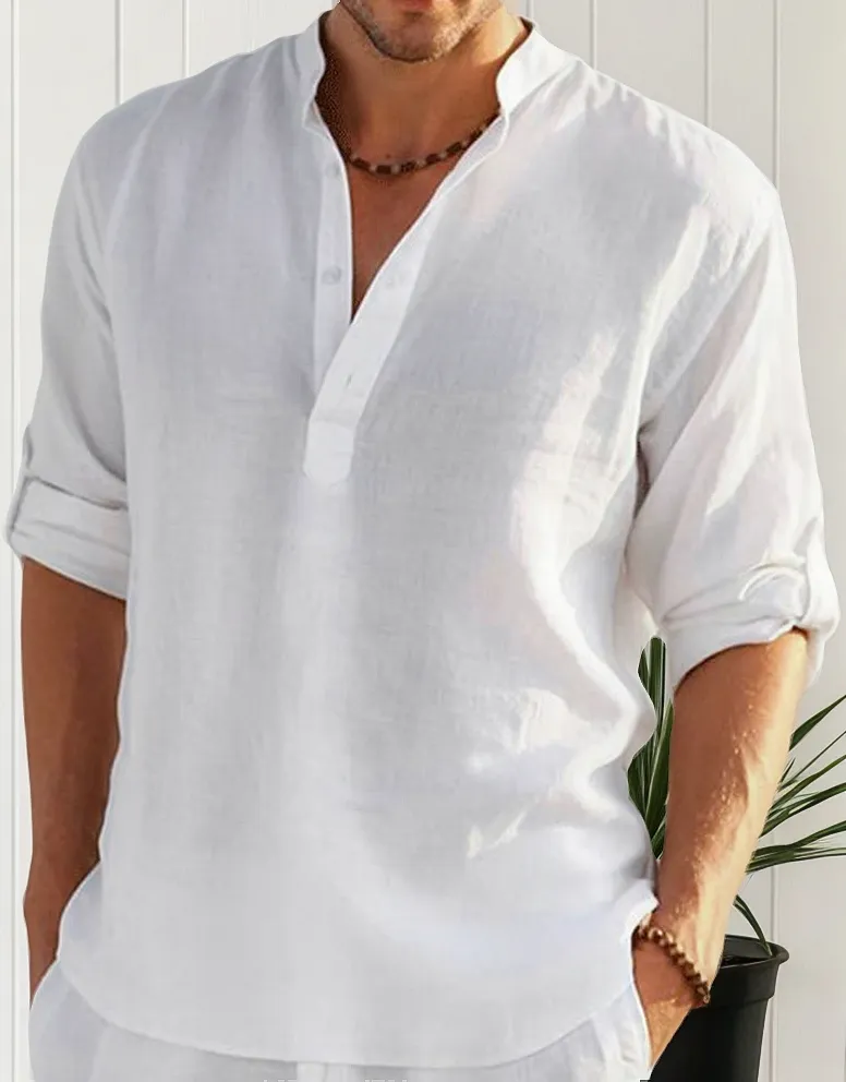 Naikan® Camisa De Lino Hombre Casual Manga Larga Slim Fit.