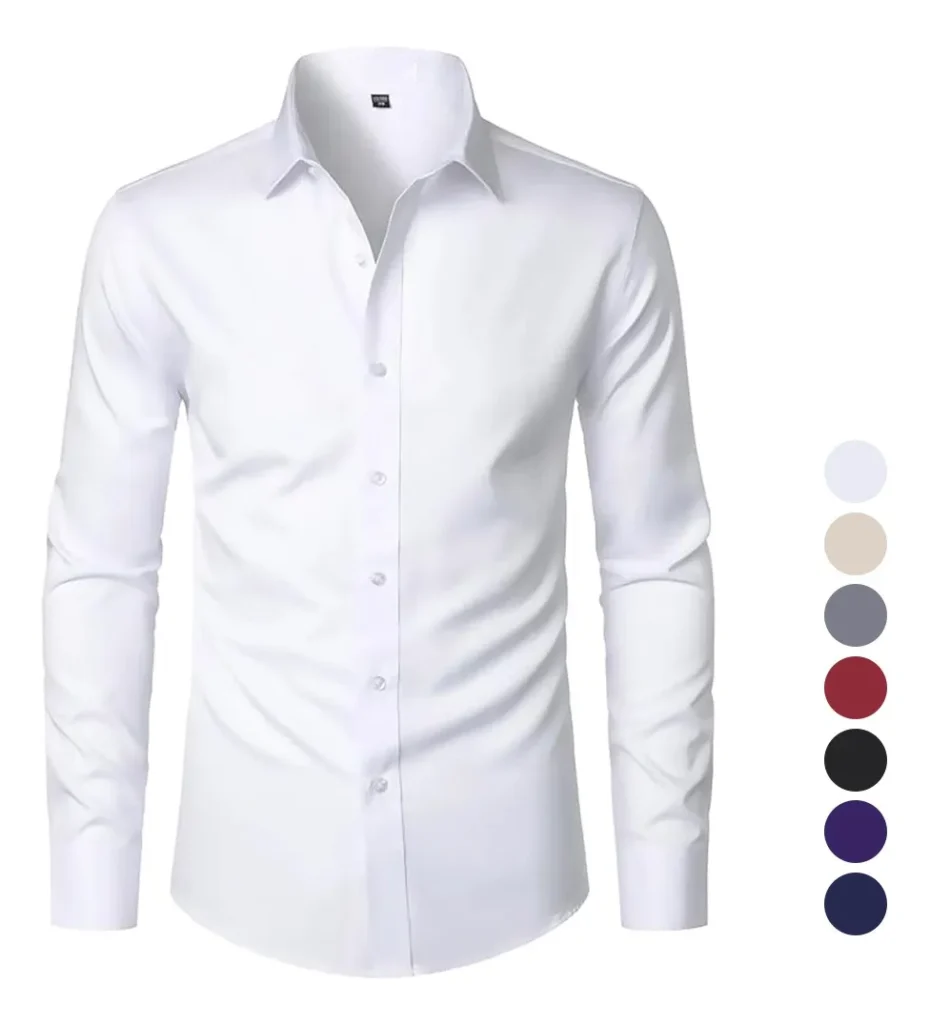 Camisa Slim Fit Manga Larga Para Hombre Casual.